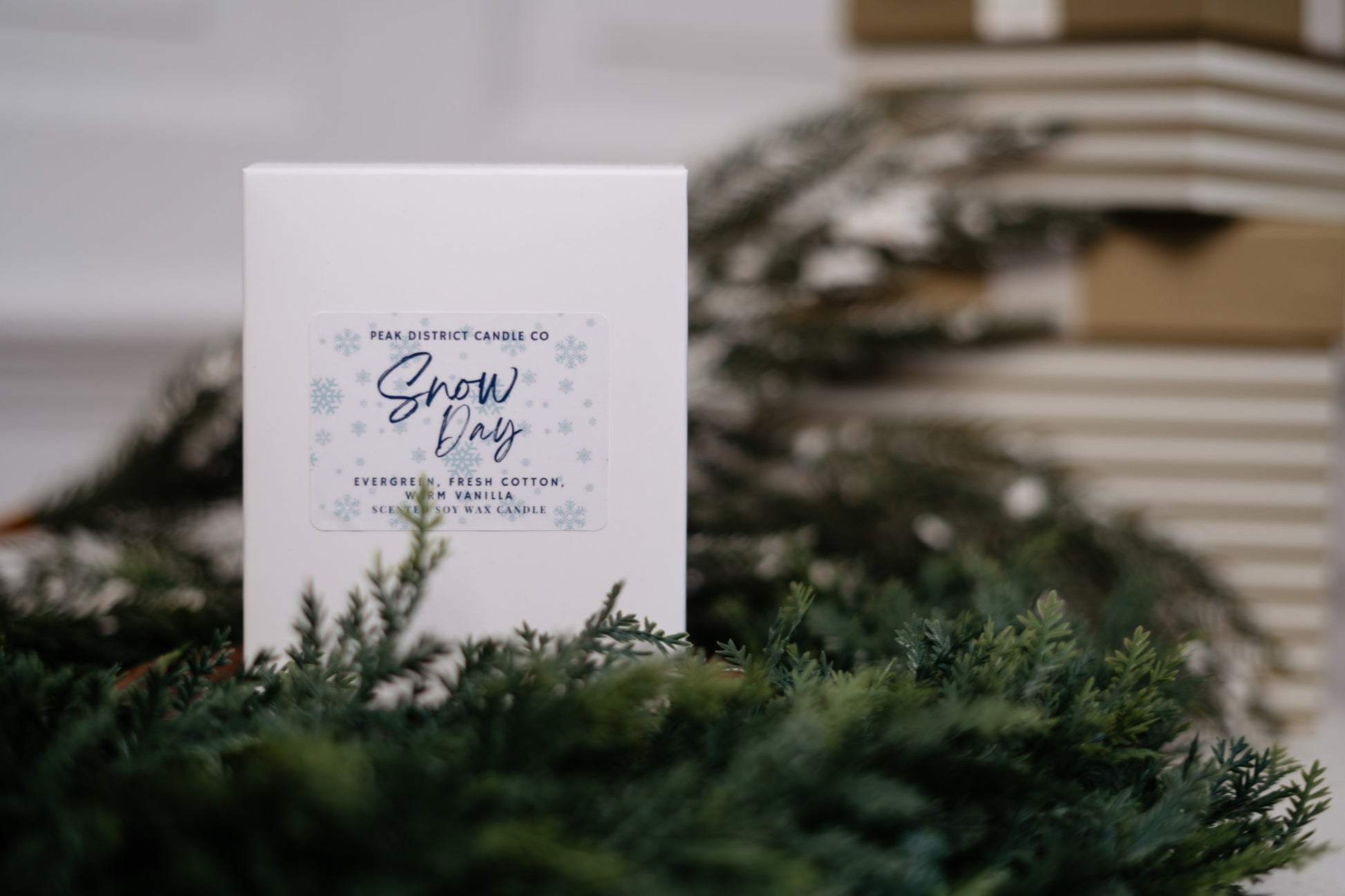 The fragrance, Snow Day, is a refreshing blend of crisp evergreen, cool peppermint, and soft vanilla, wrapped in the clean comfort of fresh cotton. It evokes that perfect winter moment when the world outside is blanketed in white, the air is brisk and bright, and you’re cocooned inside with warmth and wonder